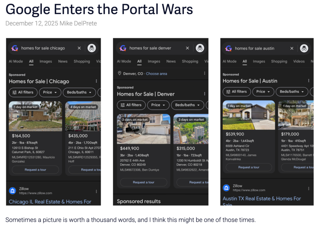 “Google putting for-sale listings directly into search results — even if it’s a test — is a big deal,” DelPrete said.