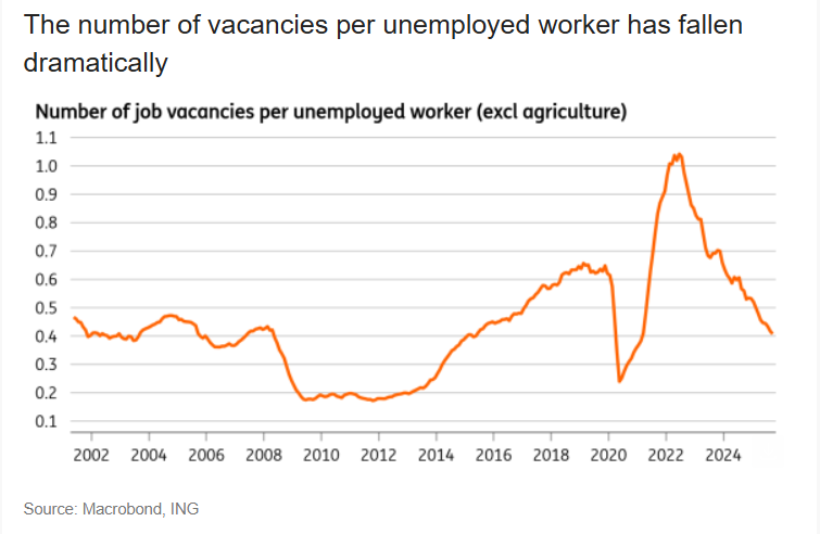 “The result is that unfilled job openings are down sharply – and more so than in other developed economies,” James Smith, developed markets economist, UK, at ING Group, said in the report.
