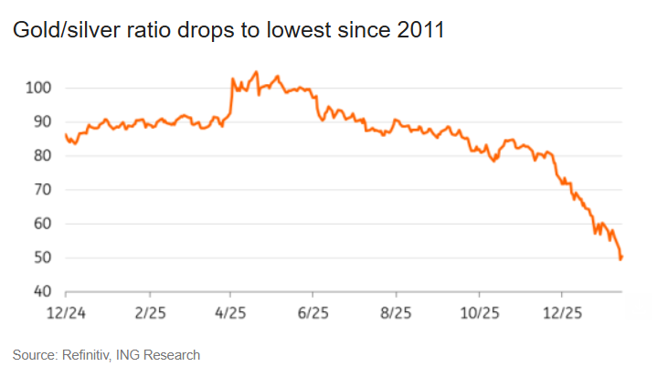 Volatility is likely to remain elevated as silver’s dual role as both an industrial and investment metal continues to drive larger percentage swings than gold, especially given its smaller overall market size.