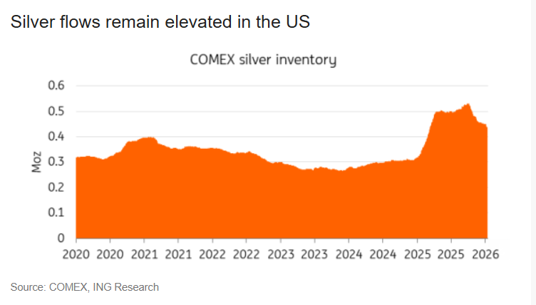 This movement resulted in a significant reduction of available silver stocks in London, the main trading center, which in turn intensified price fluctuations and market volatility, Manthey said in the ING report.