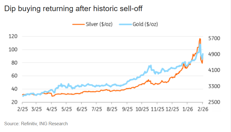 “At the same time, silver’s higher volatility means it is likely to remain more sensitive to shifts in sentiment and positioning than gold,” Manthey said.