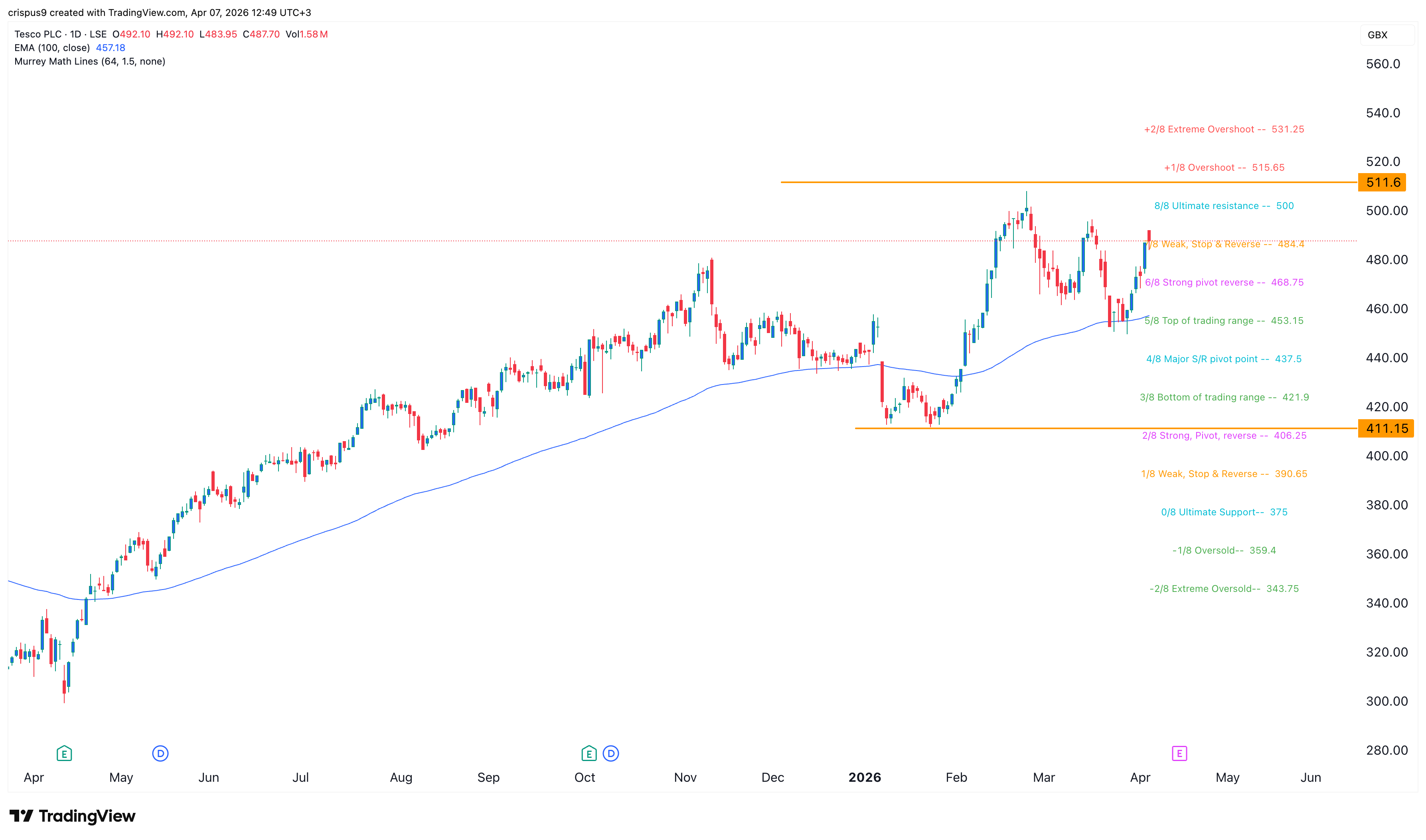 The stock recently crossed the important 100-day Exponential Moving Average at 457p, a sign that bulls have prevailed.