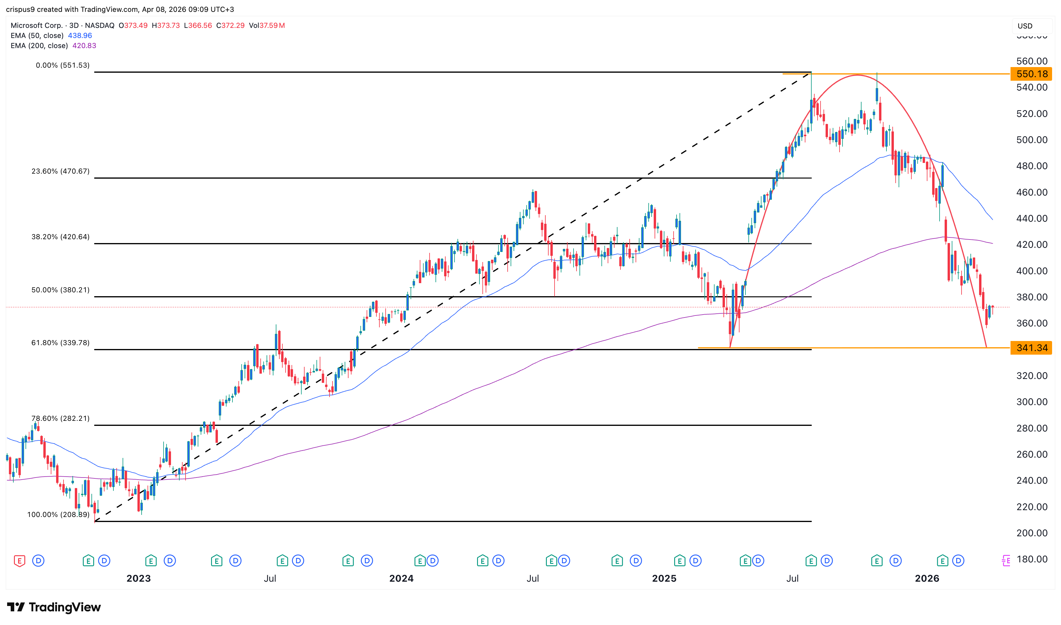 Microsoft stock has crashed into a technical bear market after plunging from $550 to the current $372. This retreat has coincided with the ongoing sell-off in software stocks and as concerns about its massive capital expenditure continues. So, will the stock rebound now that it has become a bargain?